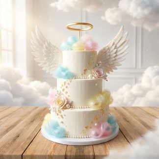 A slice of heaven. Our Angel Theme Cake features soft pastel clouds, angel wings, and…